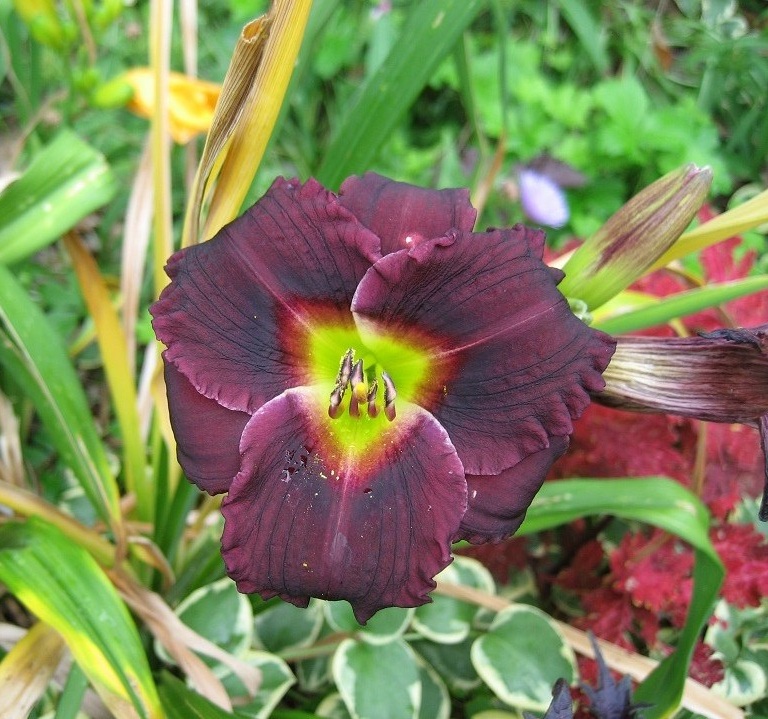 I'm not sure if I posted these blooms yet. both were open today, the first is Siloam Ethel Smith and the last one is Siloam Elfin's Jewel. I don't really like S. Ethel Smith but because it's a siloam I have it. also I like it 'cause it blooms late and adds color to the garden when everything else has bloomed. : S. Elfin Jewel I have put on a few other patterned mini's and look forward to seeing what it might do...I"m not in love with this one's colors anyway, kind of a weird pair up and pale..but I think if you got some different colors or patterns in there could be really interesting. that reminds me I want the daylily Jason Salter, a big pale sort of eye but it's very catching.